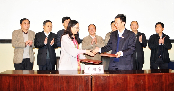 签约仪式后,季侃校友为我校师生做报告。科技处、能电学院相关负责人及师生代表参加了活动。