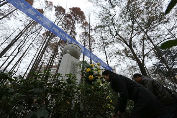 12月13日,是第二个“国家公祭日”。我校在南京大屠杀死难者清凉山丛葬地“侵华日军南京大屠杀清凉山遇难同胞纪念碑”前隆重举行悼念活动,沉痛悼念和缅怀逝去的同胞,表达不忘国耻、圆梦中华的决心。悼念仪式由校党委书记朱拓主持,校领导、二级单位党委书记、副书记,机关干部,教师代表,国防生、学生骨干和抗战老兵参加了悼念仪式。