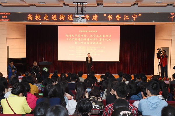 4月24日,我校与南京市江宁区谷里街道开展文化共建活动共同迎接世界读书日,并举行了《文化共建合作意向书》签订仪式。