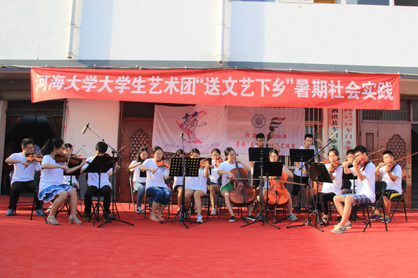 文化下乡期间,实践团师生还为当地儿童带来艺术课堂,现场演示、教授音乐舞蹈等艺术体验课堂,讲解基础乐理知识,普及艺术常识,体验不同乐器的演奏技巧。演出现场还邀请小朋友们同台演出,激发小朋友们的艺术梦。(文/朱乔、高阳 图/冯韫韬)
