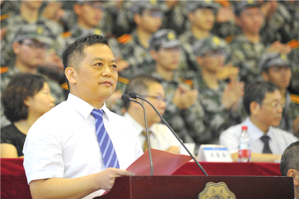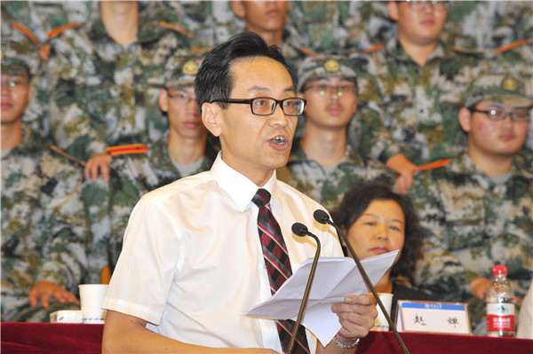 某部政治部副主任郭宏图作军训动员