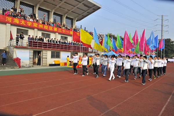 国旗队、校旗队、彩旗队以及各代表队依次入场,各方阵朝气蓬勃、英姿飒爽、整齐如一,他们身着精心设计的个性服装,迈着整齐的步伐,喊着激昂奋进的口号,充分彰显了河海人团结自强、拼搏向上的精神风貌。