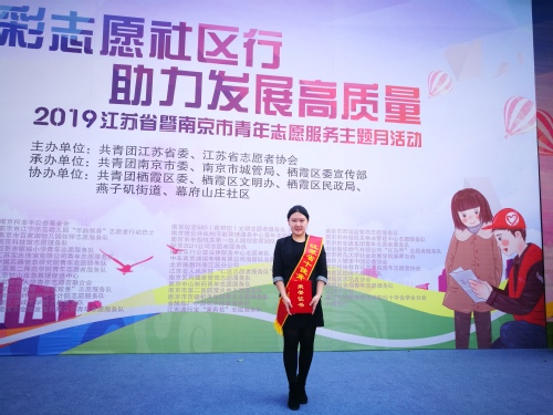 多年来,她热衷志愿服务,积极投身社会实践,曾担任第二届夏季青年奥林匹克运动会、第十五届全国大学生足球联赛、首届江苏发展大会等活动志愿者。并积极组织、参加科普宣传、环保行动、禁毒防艾等各类志愿服务活动100余次,累计服务时长1500余小时。2016年成功入选中国青年志愿者第十九届研究生支教团,2017年7月奔赴西部开展支教工作。在志愿服务的道路上一路坚守,一路成长。