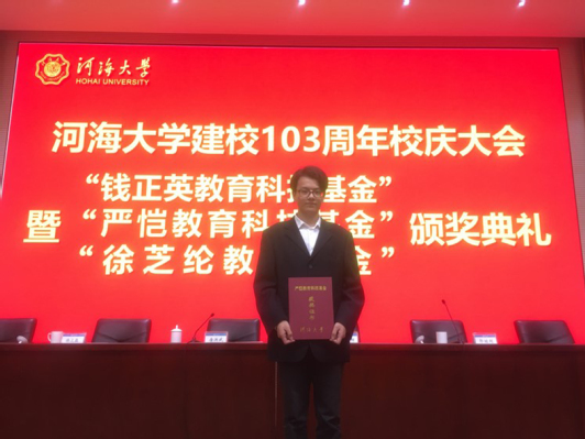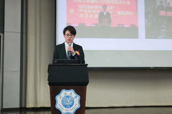 大学入学伊始,在开学典礼上,老师教大家唱校歌的时候,“大哉河海奔前程,毋负邦人期”使得他感触颇深,使他感到百年河海的学子而自豪,同时也感受到了一名“水之子”的责任与担当。