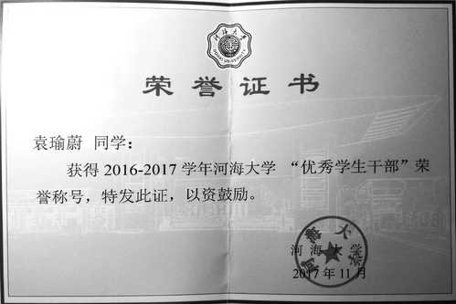 作为一名学生干部,他严格自我要求,作风端正,点滴躬行实践为更好为同学服务而不断努力,得到广大老师同学的认可与支持,曾连续两年获得社会工作奖学金、学生会“优秀部长”称号、“优秀学生干部”荣誉称号。