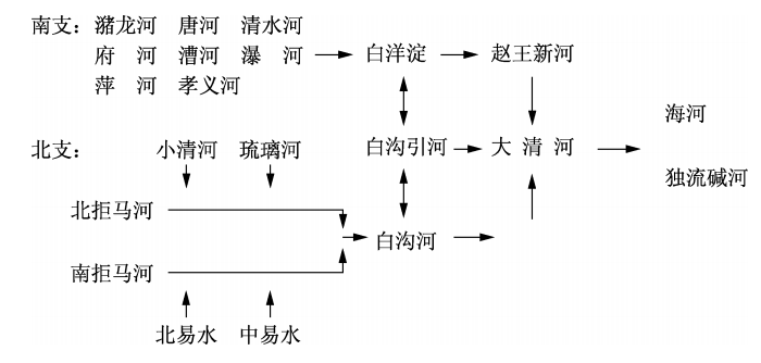 大清河系示意图(来源:李福顺、王春霞主编的《风雨千年白洋淀》)