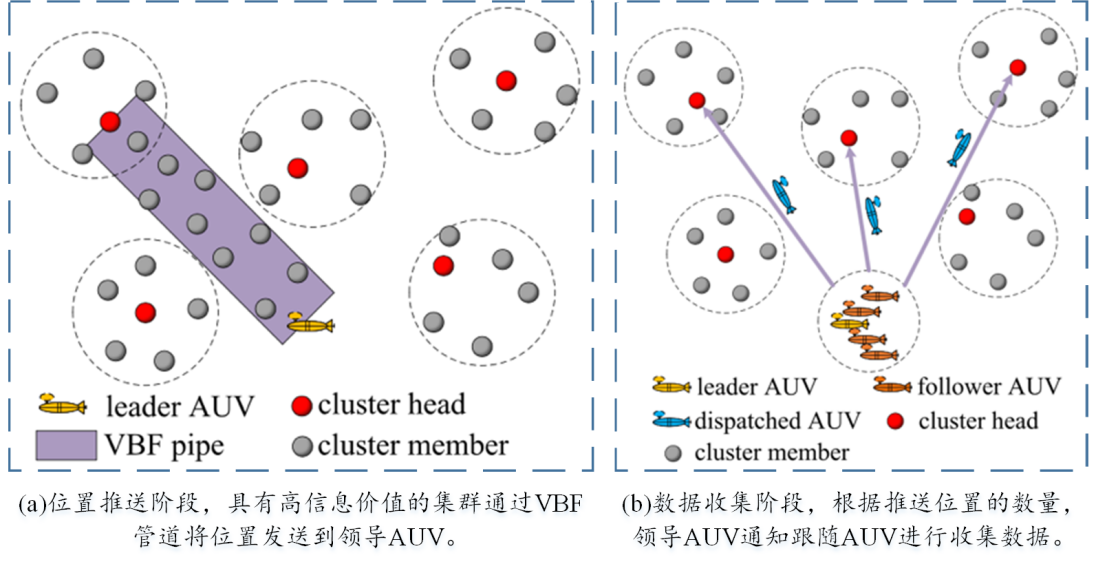 在应对外部被动监听攻击方面,韩光洁团队也开展了面向水声传感网的源位置隐私安全研究。针对海底输油管道面临的安全问题,韩光洁团队提出一种基于伪装AUV的源位置隐私保护方案,通过交换数据源和AUV的身份来形成匿名簇以混淆虚假源与真实源,达到对真实数据源位置的保护。此外,设计了一种数据分片方法,以缓解因虚假数据包传输而导致的能耗上升问题。