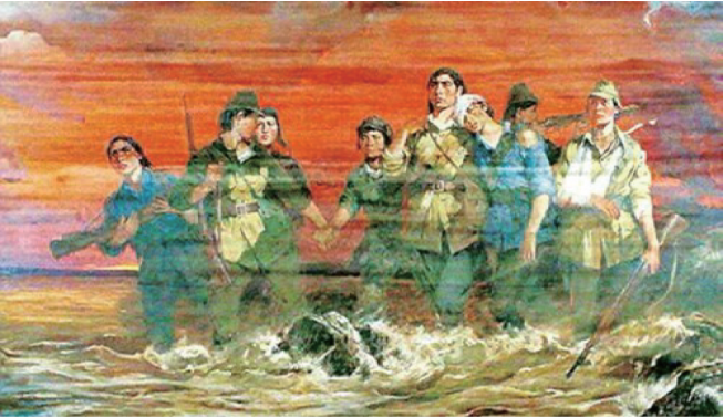 国画《八女投江》(创作者:王盛烈,1957年,现收藏于中国人民革命军事博物馆)