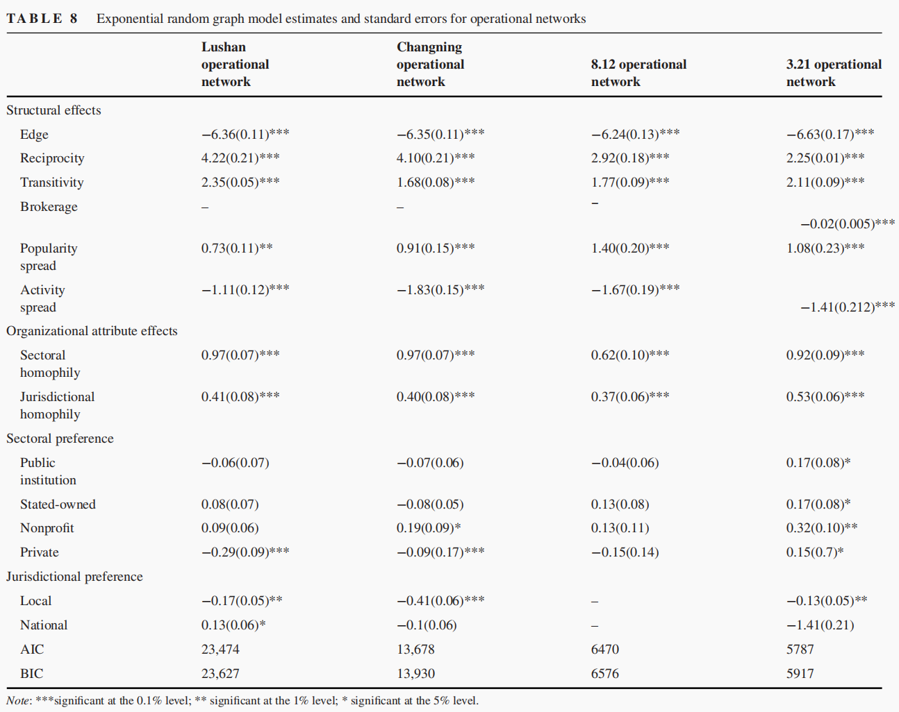 结果发现:1)有效的应急响应全网络需要整合计划网络和突生网络(见图1);2)计划网络为应急响应全网络提供了最初的组织框架,计划网络的生成机理与应急响应全网络的生成机理高度一致(见图1和图2);3)灾难情景下,组织更愿意建立强关系和同质性关系,以此来生成应急响应组织网络(表2和表3)。