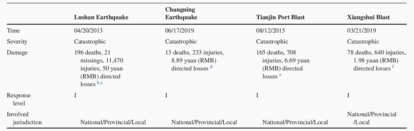 本研究以过去十年来国内的两起自然灾害和两起事故灾难为研究案例(表1),基于网络数据和田野访谈资料,利用网络分析中的指数图随机模型(Exponent Random Graph Model, ERGM),对四次灾难的组织网络进行量化分析。