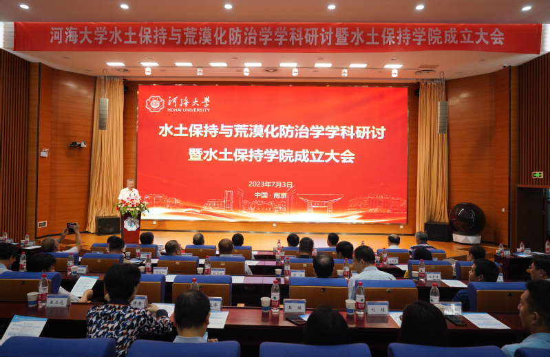 7月3日,我校举行水土保持与荒漠化防治学学科研讨暨水土保持学院成立大会。中国水土保持学会副理事长、中国工程院院士胡春宏,水利部水土保持监测中心副主任乔殿新,江苏省水利厅副厅长喻君杰,中国水土保持学会副理事长兼秘书长、北京林业大学副校长张志强,南方水土保持研究会理事长、南昌工程学院原党委书记金志农,南京林业大学原副校长张金池以及来自西北农林科技大学、长江科学院水土保持研究所、黄河水利91免费下载官方版院水土保持研究所、中国科学院水利部水土保持研究所、中国科学院南京土壤研究所、江苏省水利厅等政府部门、兄弟院校、相关科研院所及企事业单位的专家、领导出席大会。校党委书记、中国工程院院士唐洪武,校长杨桂山,校党委副书记、纪委书记孟新以及学校有关单位负责人、师生代表等参加活动。校常务副校长李俊杰主持大会。