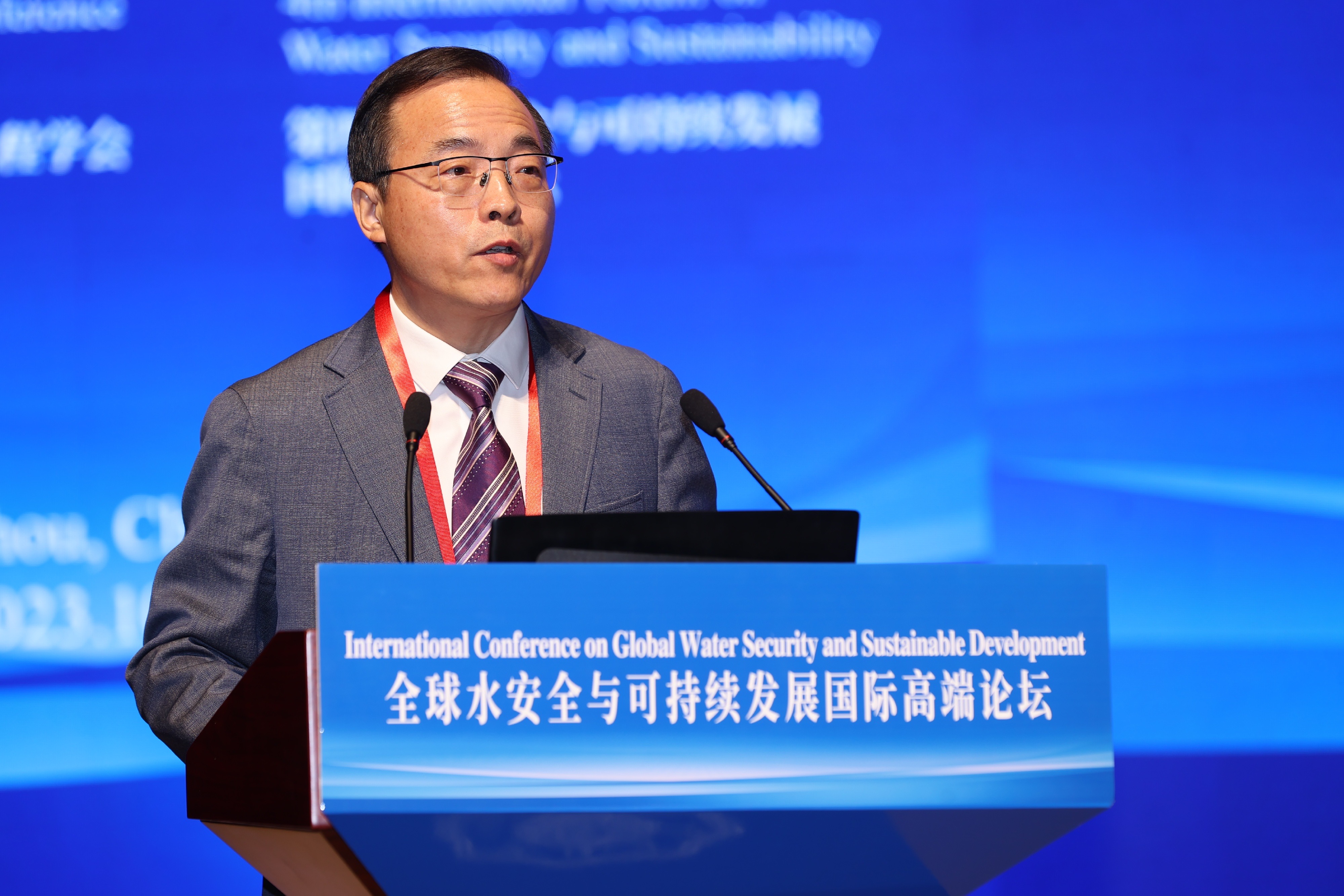 杨桂山在致辞中说,当前水安全问题已经向世界各国敲响了警钟,亟需深化国际交流合作,共享治水经验和成果。本次论坛旨在通过战略性的讨论及研究,打破学科壁垒、形成协同创新、推动学科间的交叉融合,增进全球顶级层次的国际合作。希望本届论坛可以进一步成为水管理领域的学者、科技工作者以及决策者、实践者之间进行开放、坦诚、有效交流的平台,也欢迎专家学者为探索“在发展中保护,在保护中发展”的水安全新路径带来更多视角和观点,为践行“绿水青山就是金山银山”理念,协同推进经济高质量发展和生态环境高水平保护,促进人与自然和谐共生贡献智慧和力量。