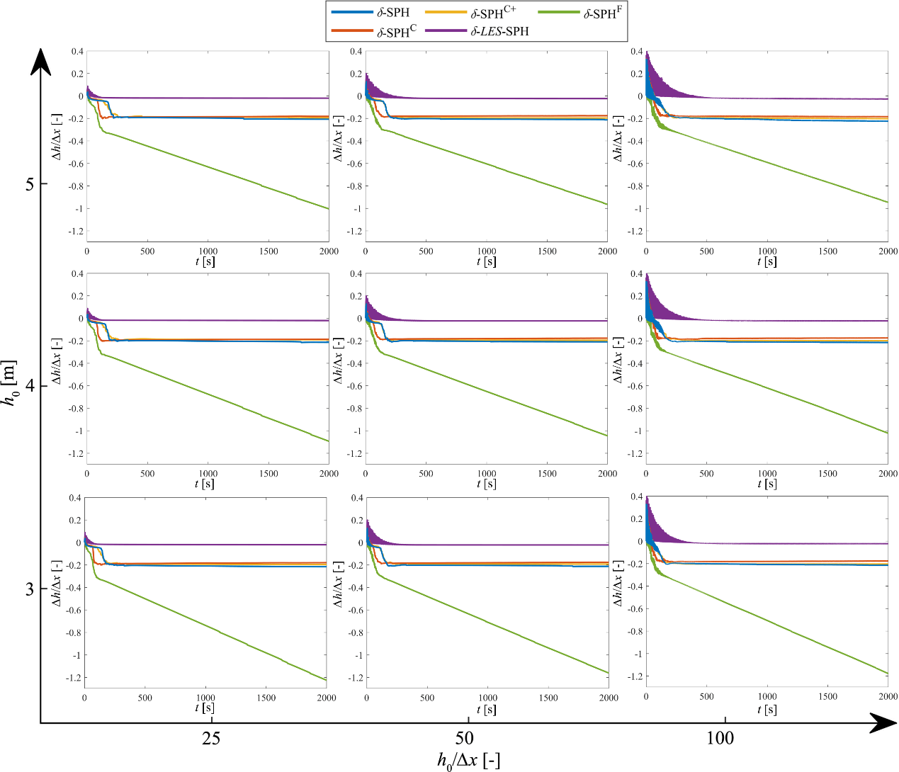 研究发现,在测试的模型中,δ-LES-SPH模型具有最好的体积守恒性,δ-SPHF模型的体积守恒性需要增强,对此本研究对该模型提出了新的数值改进,其它模型在分辨率较高的情况下其体积守恒性满足长时间尺度的应用需求。