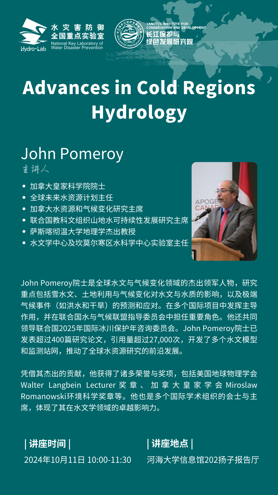 学术报告:John Pomeroy: Advances in Cold Regions Hydrology