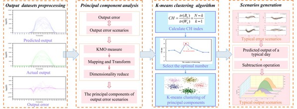 调峰调度是水库调度的核心任务之一。然而,光伏等新能源出力具有强随机性、波动性和反调峰等特性,极大加剧了电网调峰困难。为此,团队研究了光伏出力预测误差时空分布特征,构建了基于主成分降维和动态聚类的典型场景生成模型,实现对光伏预测出力的精细表征,进而提出了考虑光伏出力不确定性的水光互补调峰调度方法法,增强了水库灵活调节能力,有效降低了电网负荷峰谷差,为水光互补调度方案科学制定提供了技术支撑。