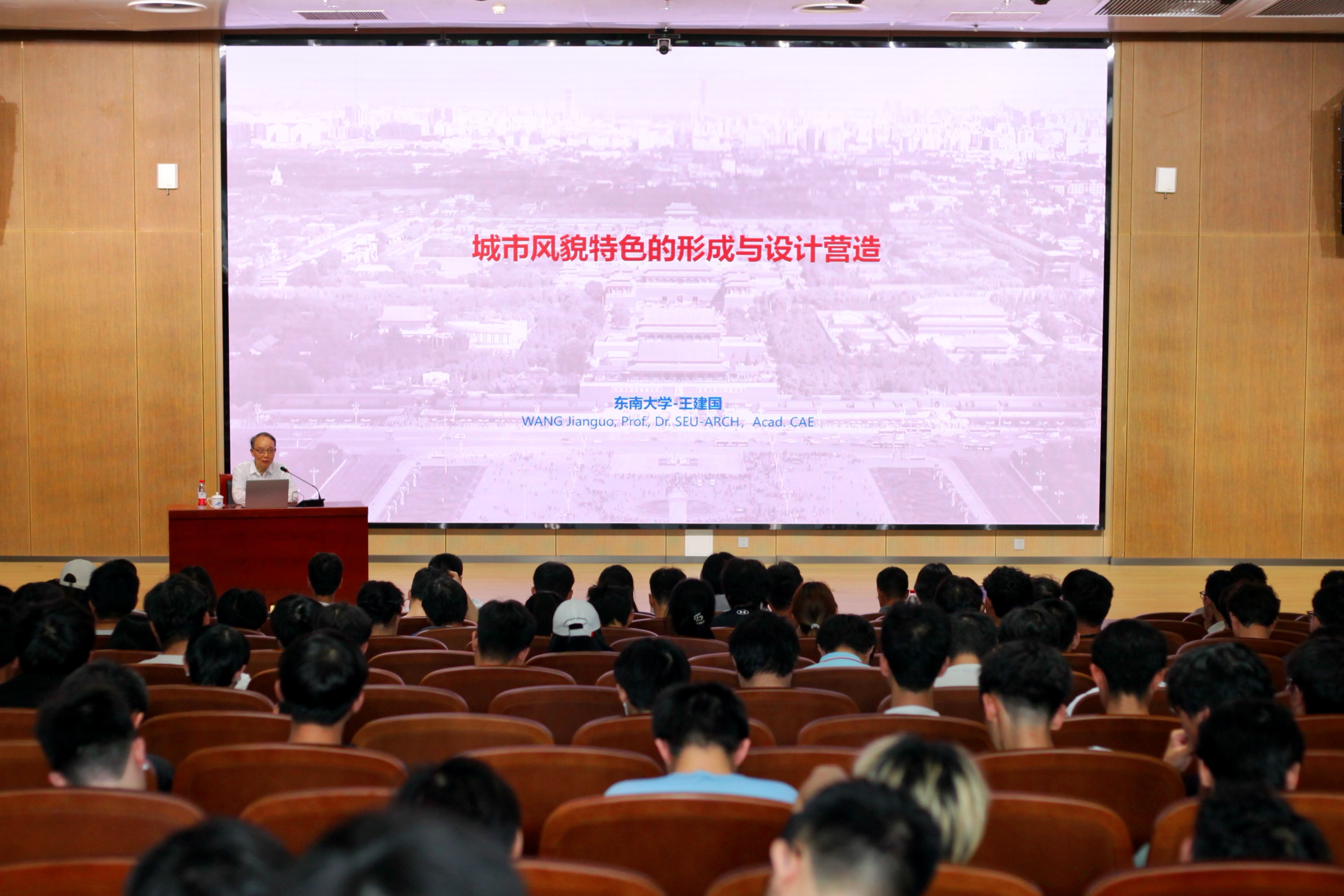 王建国院士从“自然、人文、技术”三个维度出发,分享了他在对不同城市历史沉淀、自然条件、文化活动等特色形态表征的理解和认知中探索城市风貌特色在设计层面有序演进的个人心得。他以经典建筑案例为引,生动阐释了不同城市风貌特色的本质及其独特的“文化指纹”,提出“风貌特色是历史沉淀与当代生活的共生体”,强调保护城市记忆需兼顾理性技术与人文温度。同时,分享了我校常州校区的建设理念及团队用科学赋能破除“千城一面”困局的创新实践,案例详实,内容生动,为现场师生勾勒出新时代人与城市共生共进的前沿蓝图。