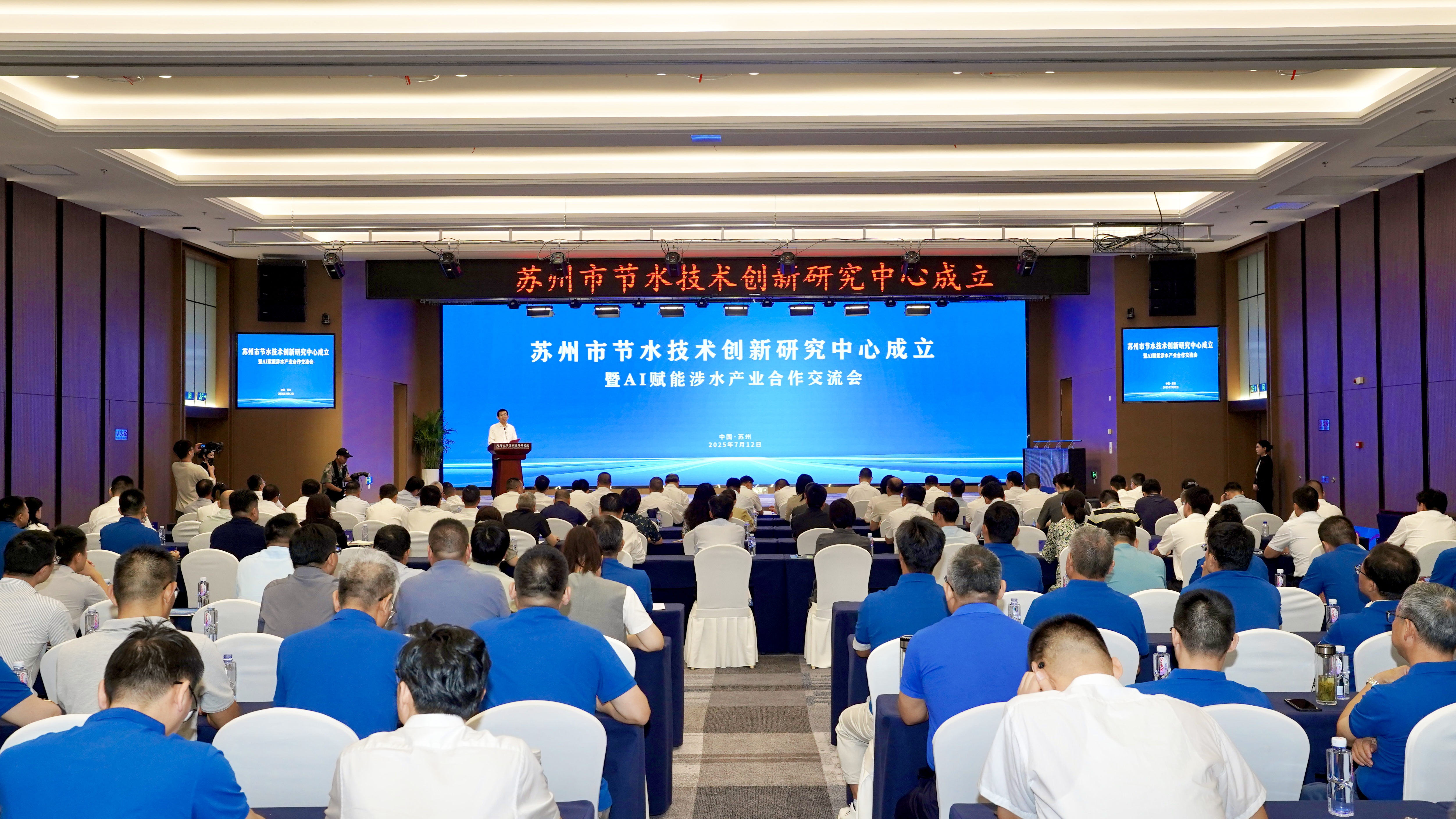 李亚平、杨桂山、唐晓东、沈志栋和江苏省节约用水办公室主任刘劲松共同启动了苏州市节水技术创新研究中心。