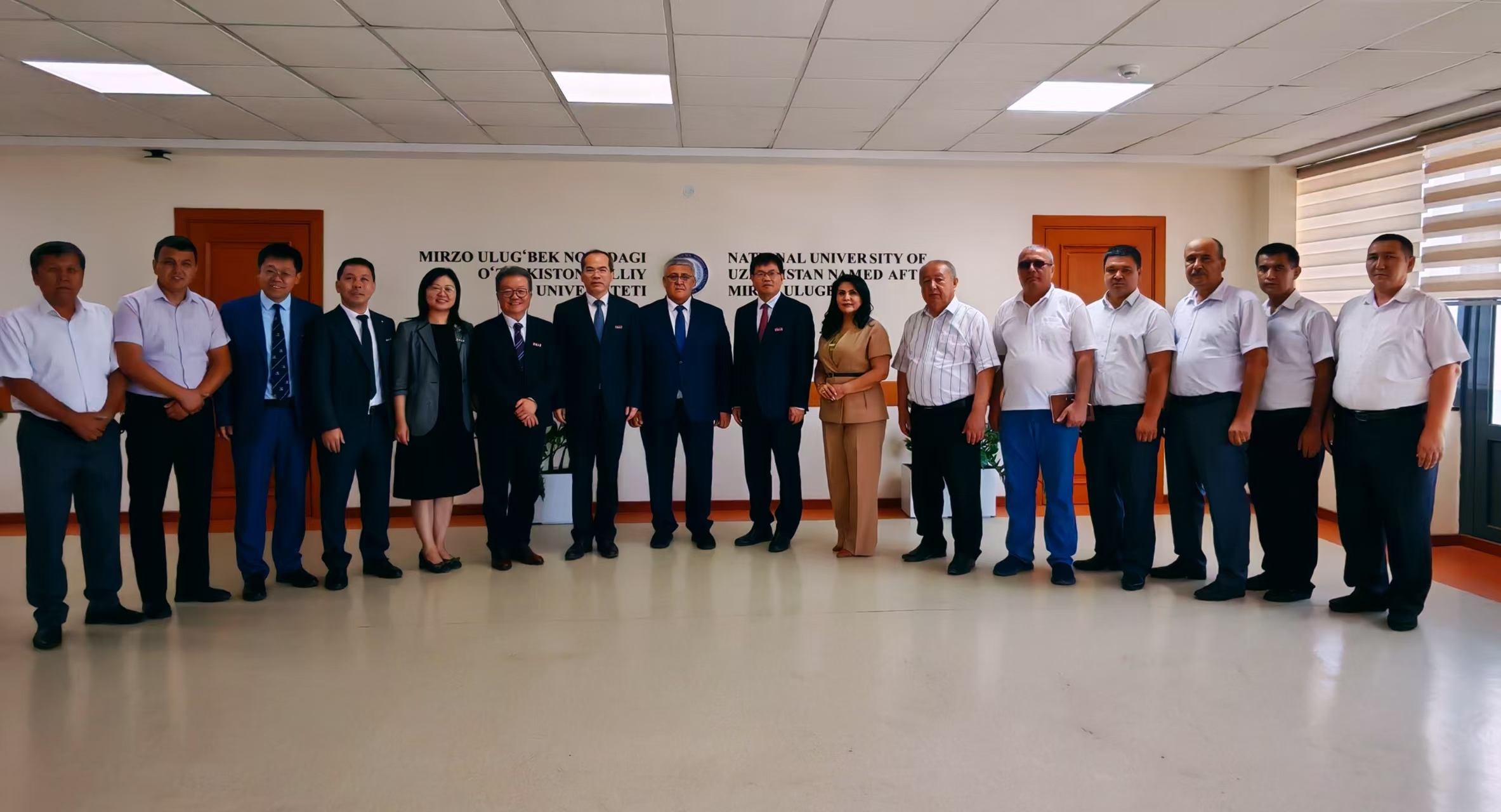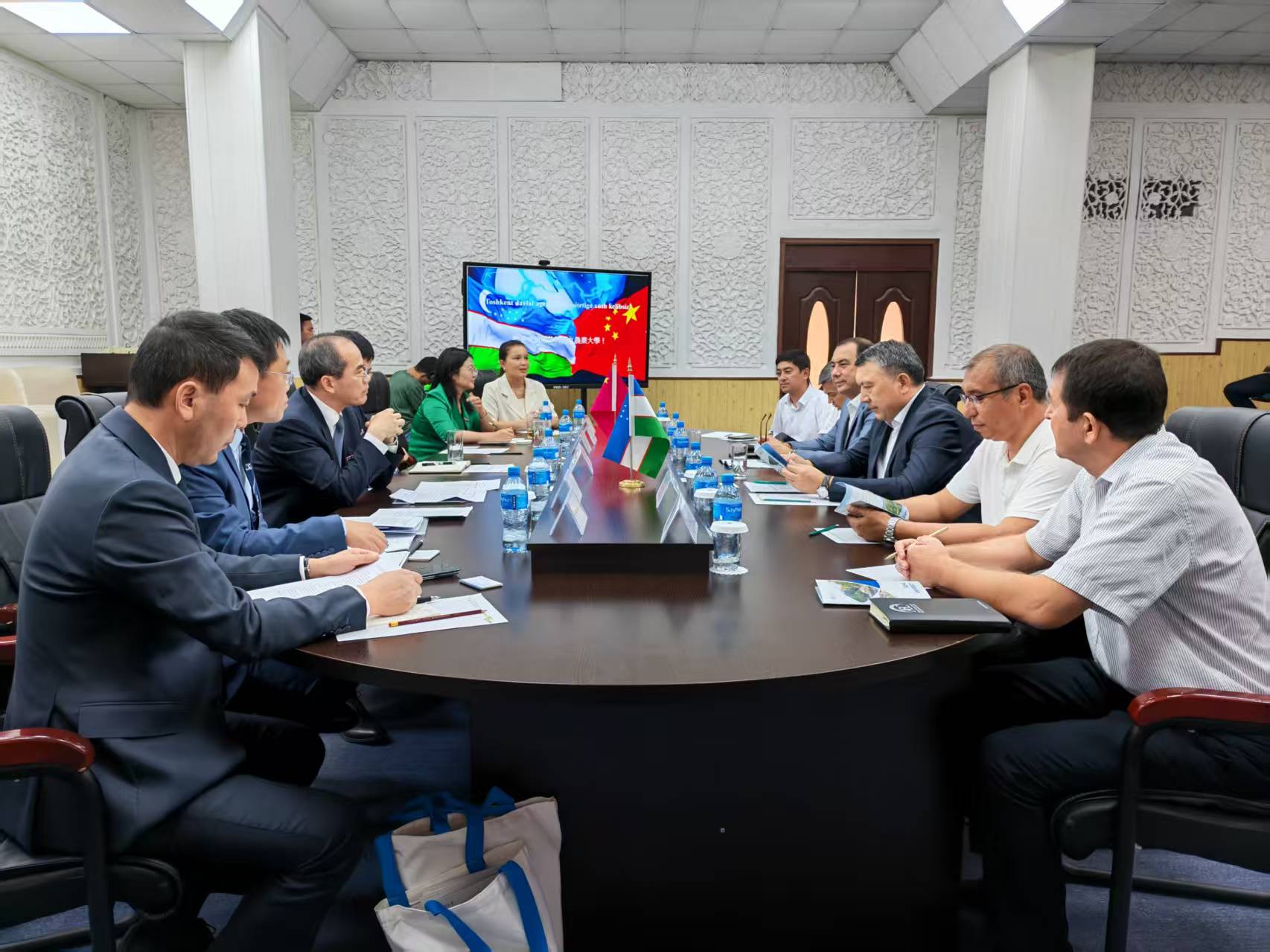 在塔什干国立农业大学,校长奥布洛穆拉多夫·纳兹鲁洛·纳伊莫维奇参加座谈。双方讨论了中乌水土资源高效利用、盐碱地治理与河湖健康国际合作联合研究中心合作事宜,达成了在优势学科领域加强交流与合作共识,并签署了合作备忘录,以支持两校学者、研究团队的学术交流、科研合作和学生往来交流。
