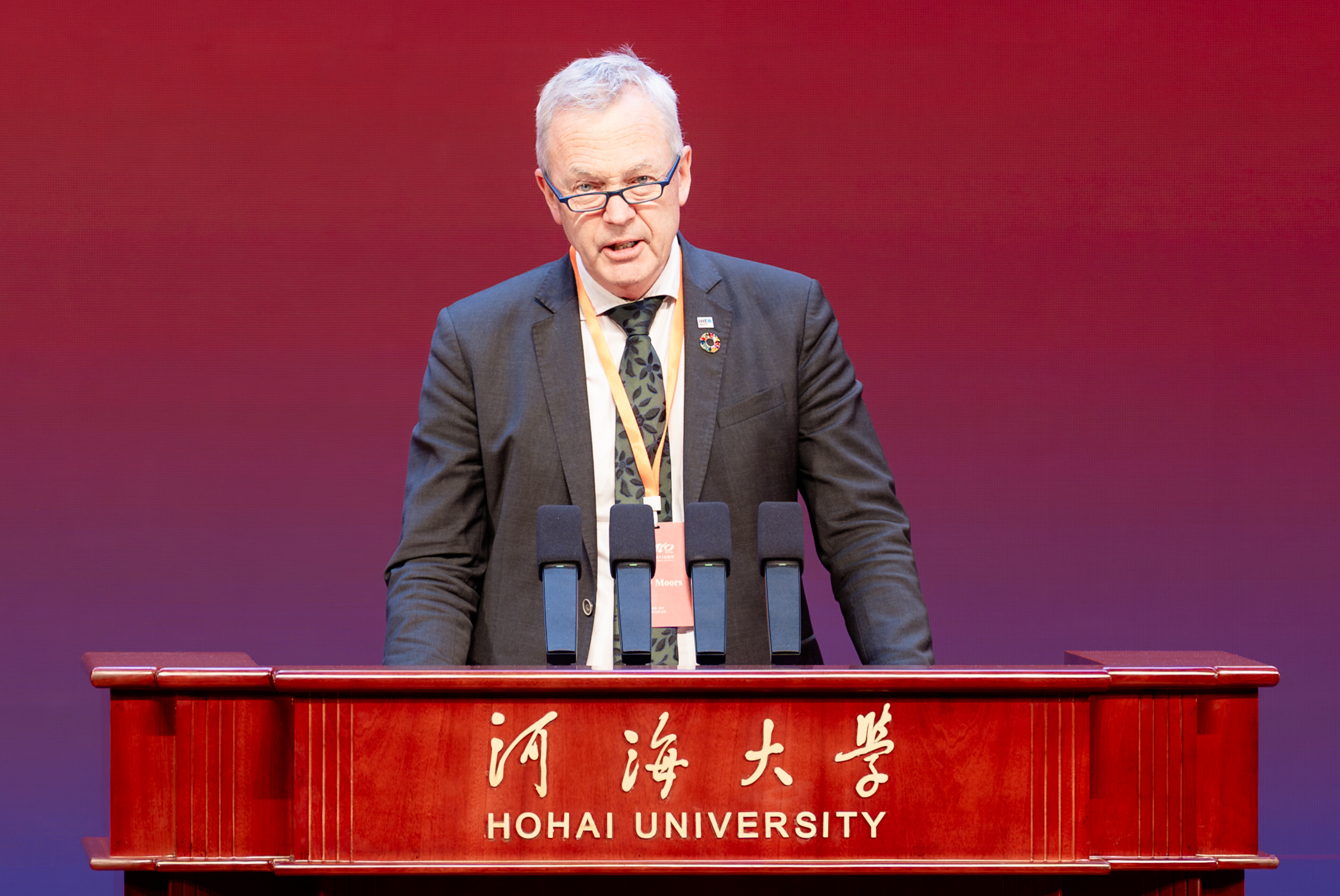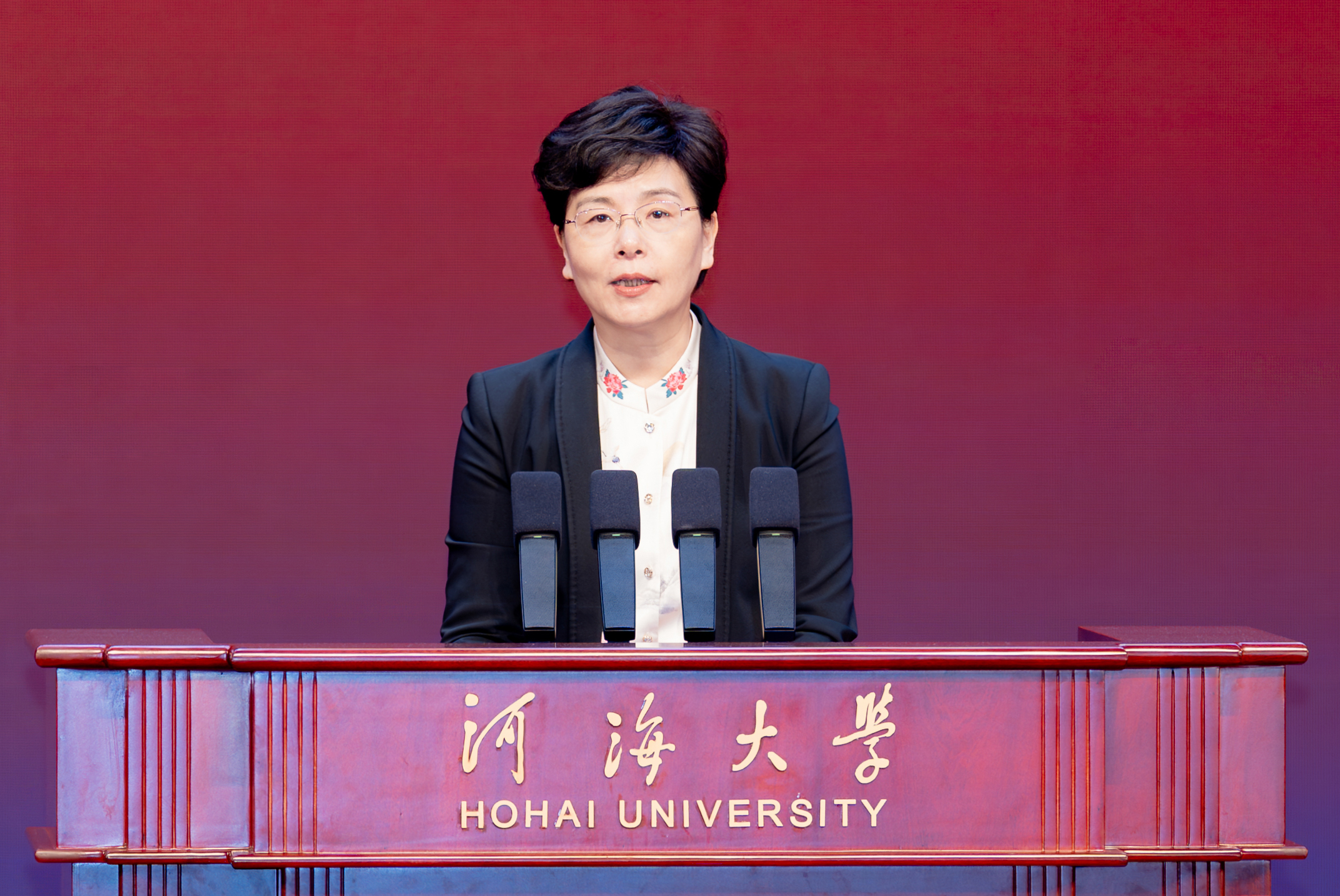 校长郑金海作学校高质量发展报告。他指出,河海纵横百十年的薪火传承,连缀起治水救国、治水报国、治水兴国、治水强国的发展脉络,成为中国水利高等教育治水患、兴水利,造福国家和民族的生动缩影。学校要以构筑“一流专门人才培养体系、一流特色优势学科体系、一流师资队伍集聚体系、一流科技产业创新体系、一流对外开放办学体系”为战略支点,巩固、延展、超越,奋力走在行业特色研究型大学的前列。面向未来,要牢牢把握教育的政治属性、人民属性、战略属性,深入贯彻落实教育强国建设规划纲要,致力于建设水利科教卓越的世界一流大学,奋力谱写服务强国建设、民族复兴伟业的崭新篇章。