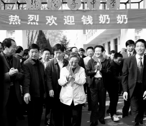 2011年,钱正英重回这所离别了67年、已更名为五河县弥陀寺初级中学的学校,为学校题写了校名。