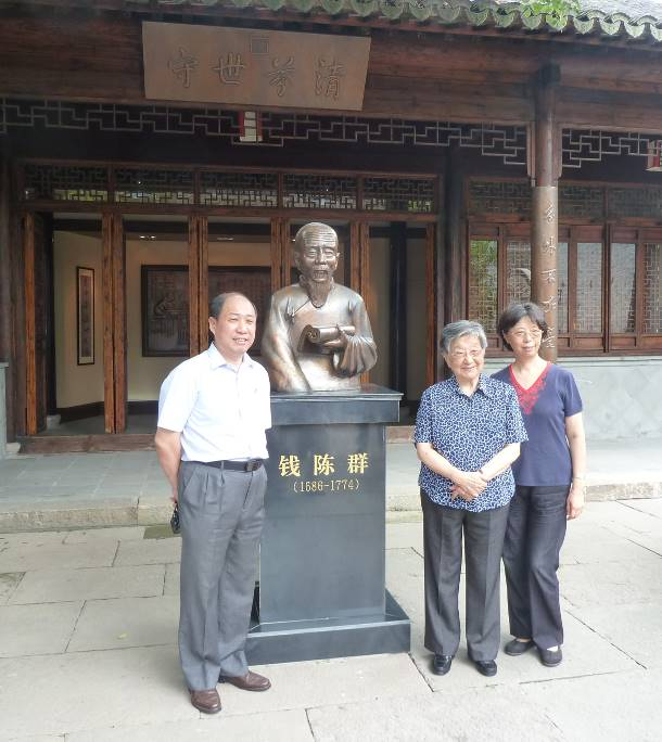 2011年10月,钱正英携子女返祖籍嘉兴清芬堂,在钱陈群塑像前留影。