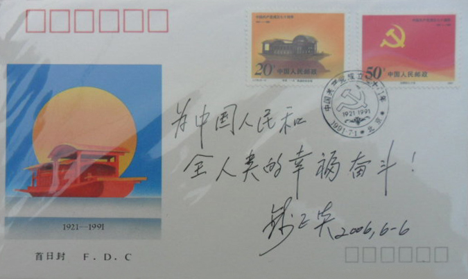 钱正英在中国共产党成立70周年纪念封上的题词