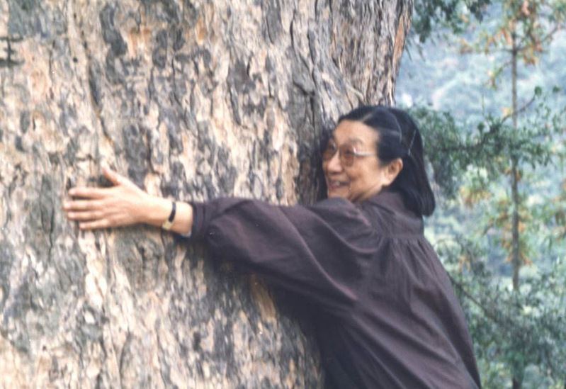 钱正英在考察中环抱千年古树